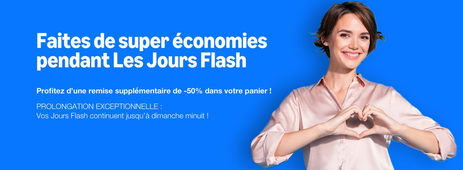 PROLONGATION EXCEPTIONNELLE DES JOURS FLASH ! -50% EXTRA DANS VOTRE PANIER, JUSQU’À DIMANCHE MINUIT !