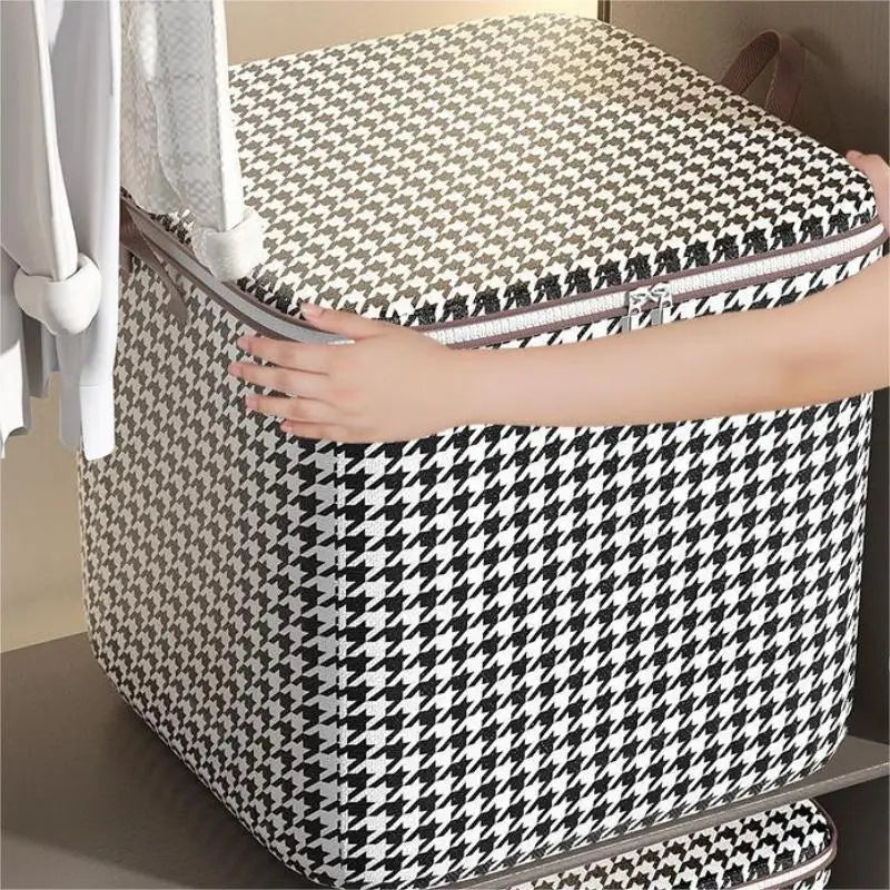 Superbe bac de rangement au motif pied-de-poule, grande capacité, pliable, lavable, double fermeture éclair, poignées robustes. Produit Premium. La livraison est offerte !