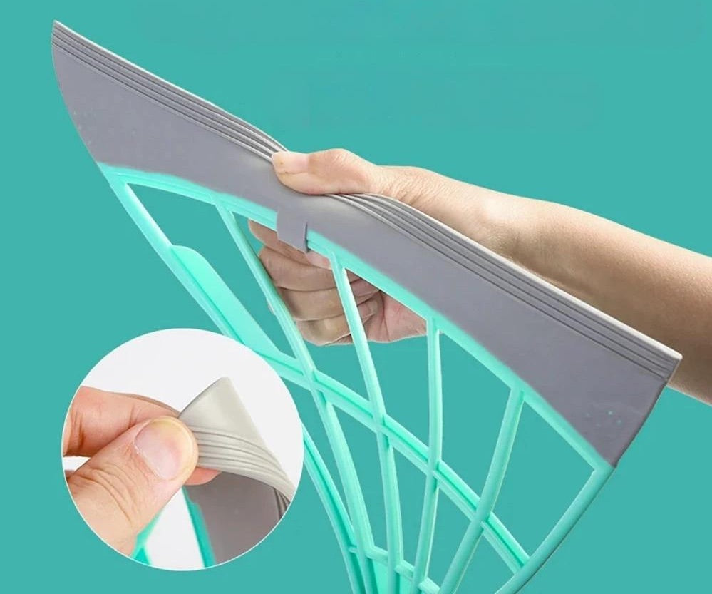 Balai magique en silicone 2-en-1, essuie-glace et ramasse-poussière, élimine l’eau, la mousse, les poils et poussières sans traces ni enchevêtrement, matériau résistant et facile à laver, idéal sols, vitres et salle de bain. Livraison offerte !