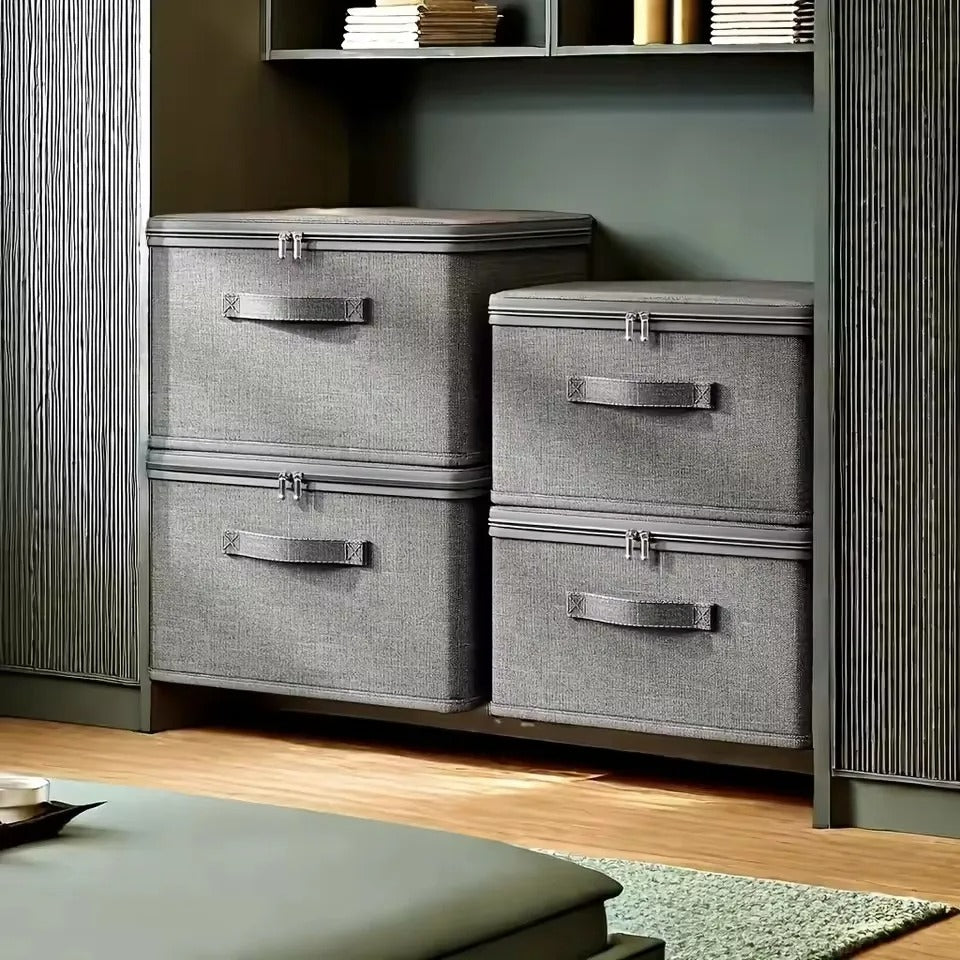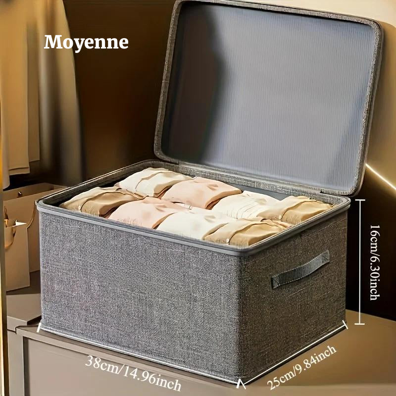 Boîte de rangement pliable multifonctionnelle en tissu imperméable avec couvercle zippé à double sens, grande capacité pour vêtements, couettes, oreillers, solution gain de place et protection optimale. Livraison offerte !