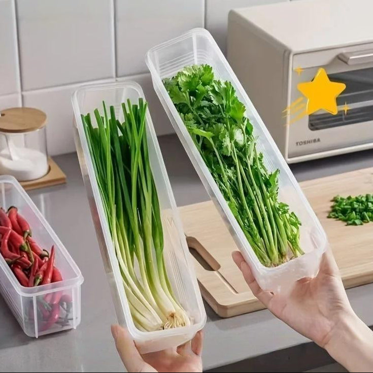 Conserve parfaitement vos légumes, fruits, restes ou nouilles sèches grâce à sa fermeture 100 % hermétique. Cette boîte de rangement fine et longue est idéale pour optimiser l’espace dans votre frigo tout en gardant vos aliments bien organisés.