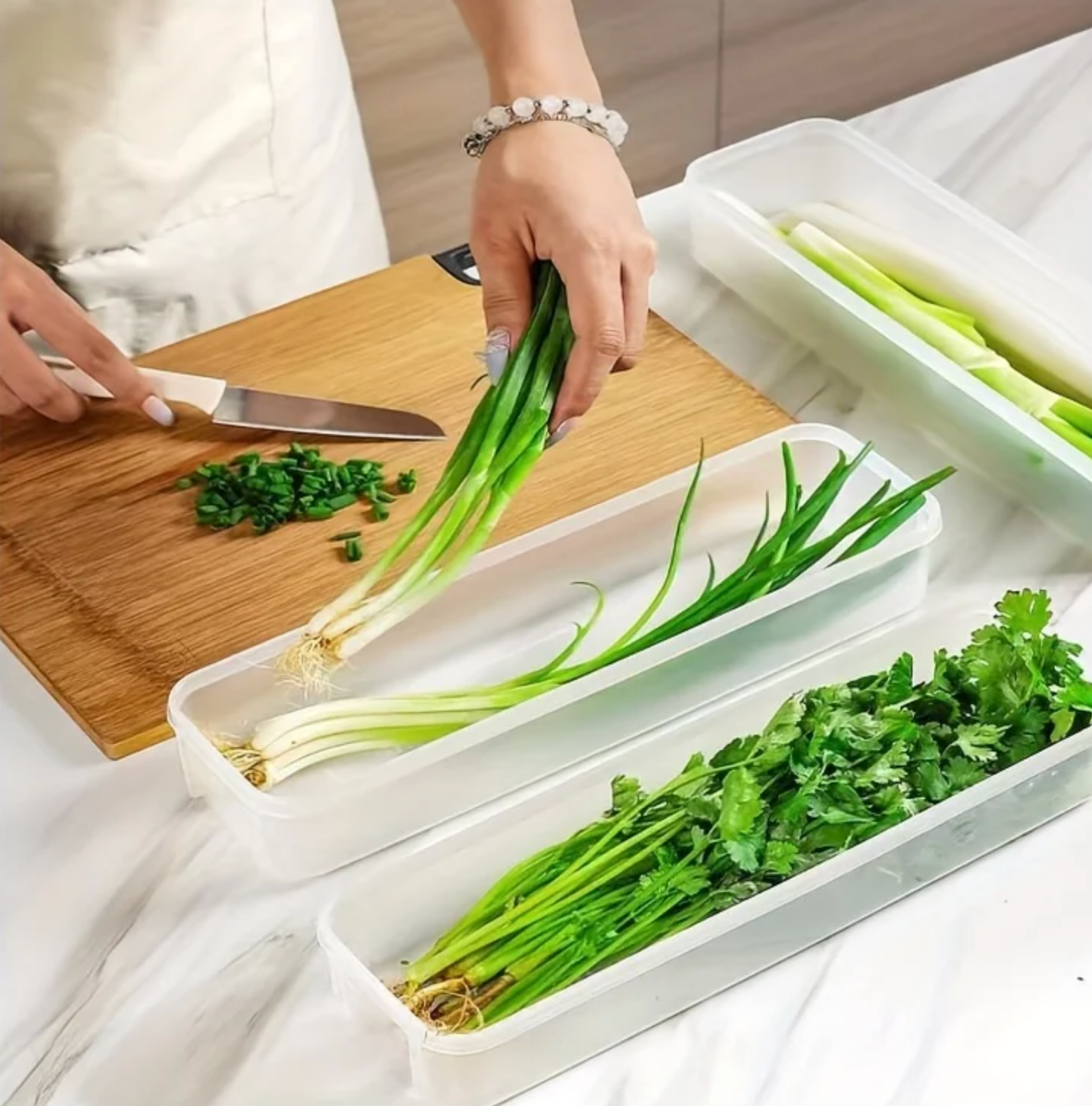 Parfaite pour les herbes fraîches, les oignons verts, les spaghettis ou les légumineuses, elle s'adapte à toutes vos envies. Grâce à son format empilable et compact (25,7 x 7,7 x 5,3 cm), elle se glisse facilement dans les compartiments du réfrigérateur.