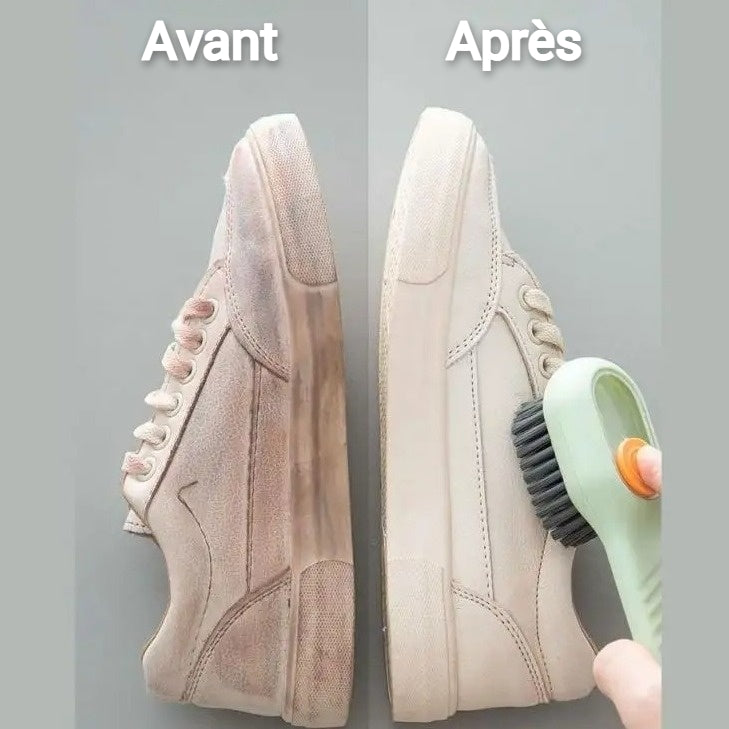 Ingénieuse brosse à poils souples, munie d'un grand réservoir pour savon liquide, pour vaisselles, vêtements, chaussures, et même dans la douche. La livraison est offerte !