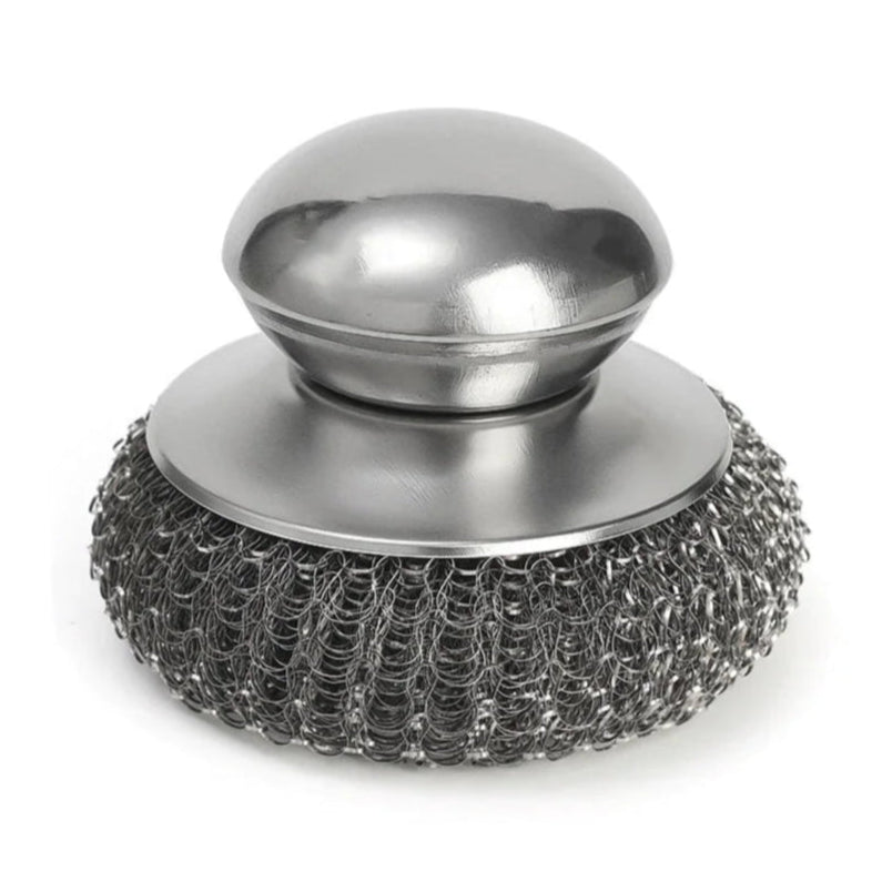 Brosse à récurer en acier inoxydable avec poignée – Nettoyage puissant et sans effort pour casseroles et poêles
