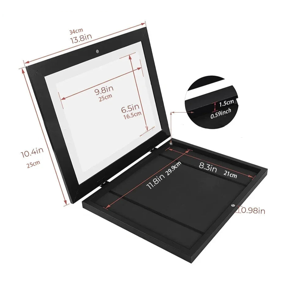 Fabuleux cadre artistique à rabat magnétique format A4 (34 x 25 cm), support de rangement mural pour photos, peintures, reproductions, souvenirs, dessins d’enfants, jusqu’à 100 images. Livraison prioritaire offerte !