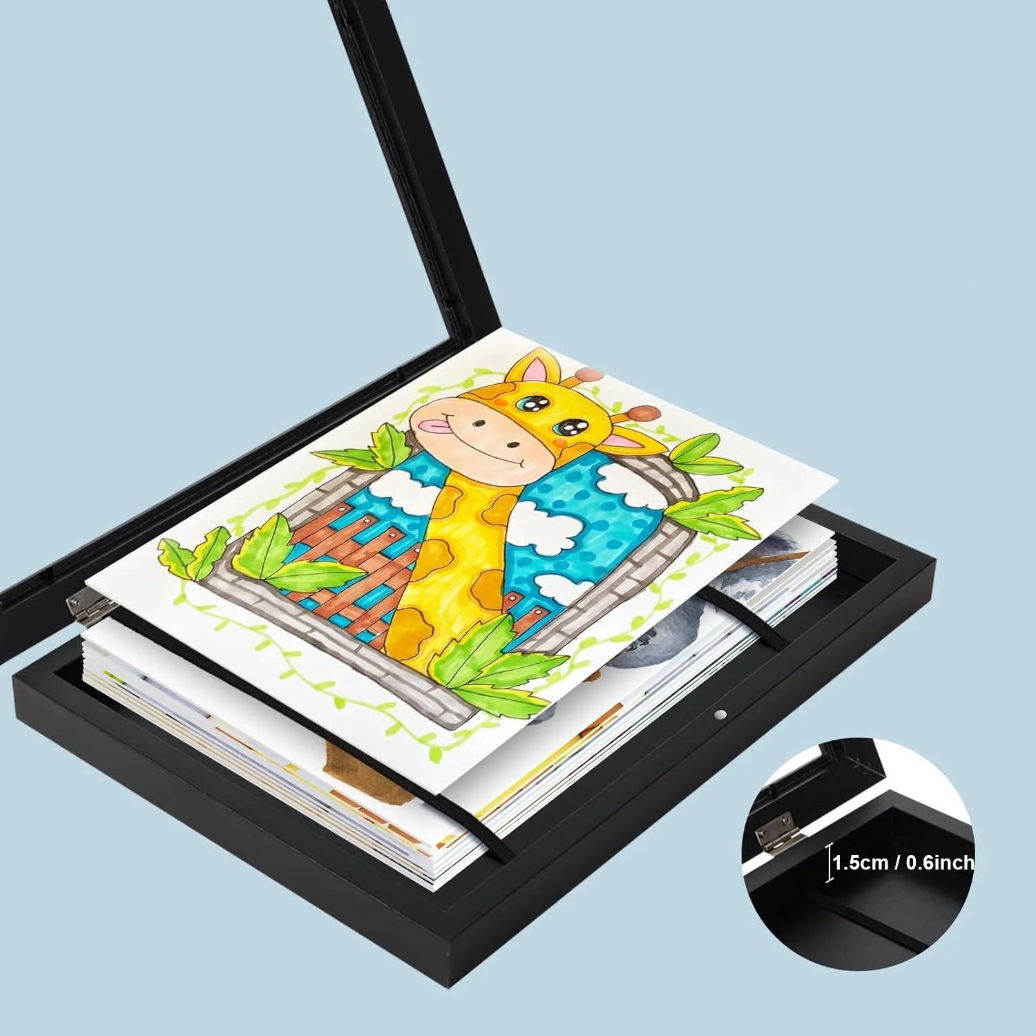 Des bandes élastiques à l’intérieur maintiennent vos œuvres bien en place.