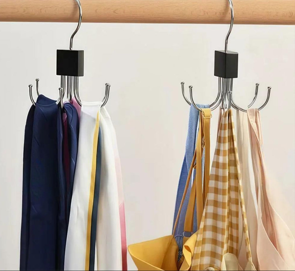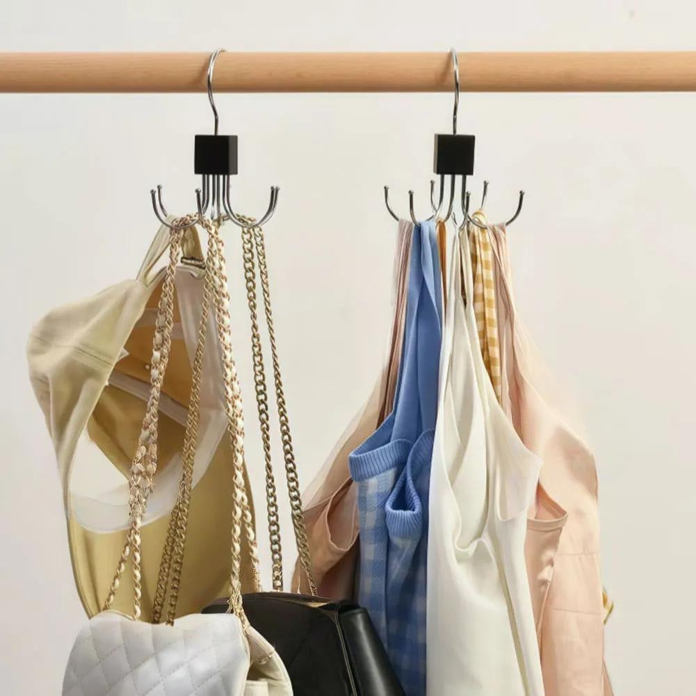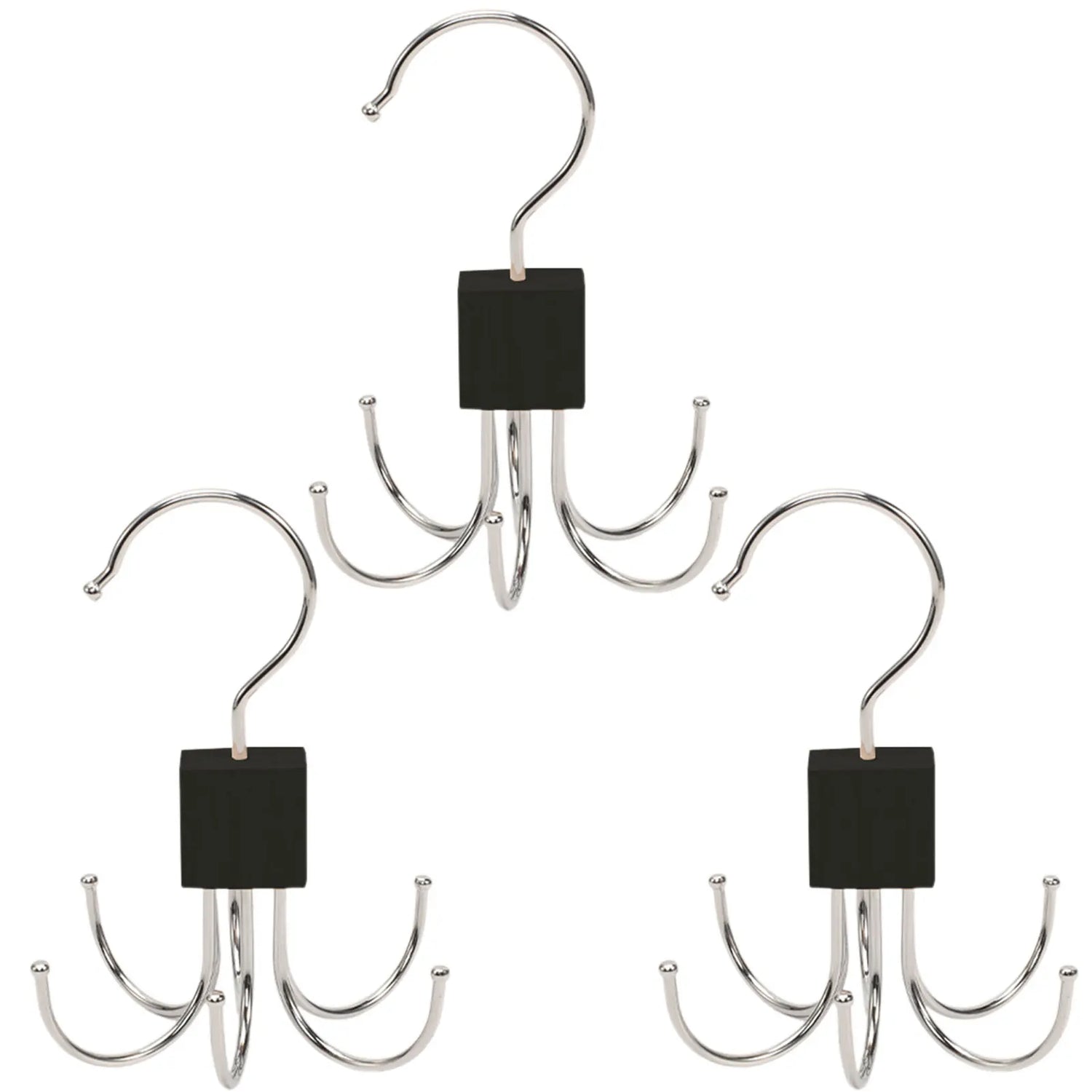 Lot de 3 cintres de rangement rotatif 360° à 6 crochets en acier, organisateurs multifonctions pour ceintures, écharpes, sacs, cravates, chapeaux et accessoires – gain de place, robuste et élégant. Livraison offerte !