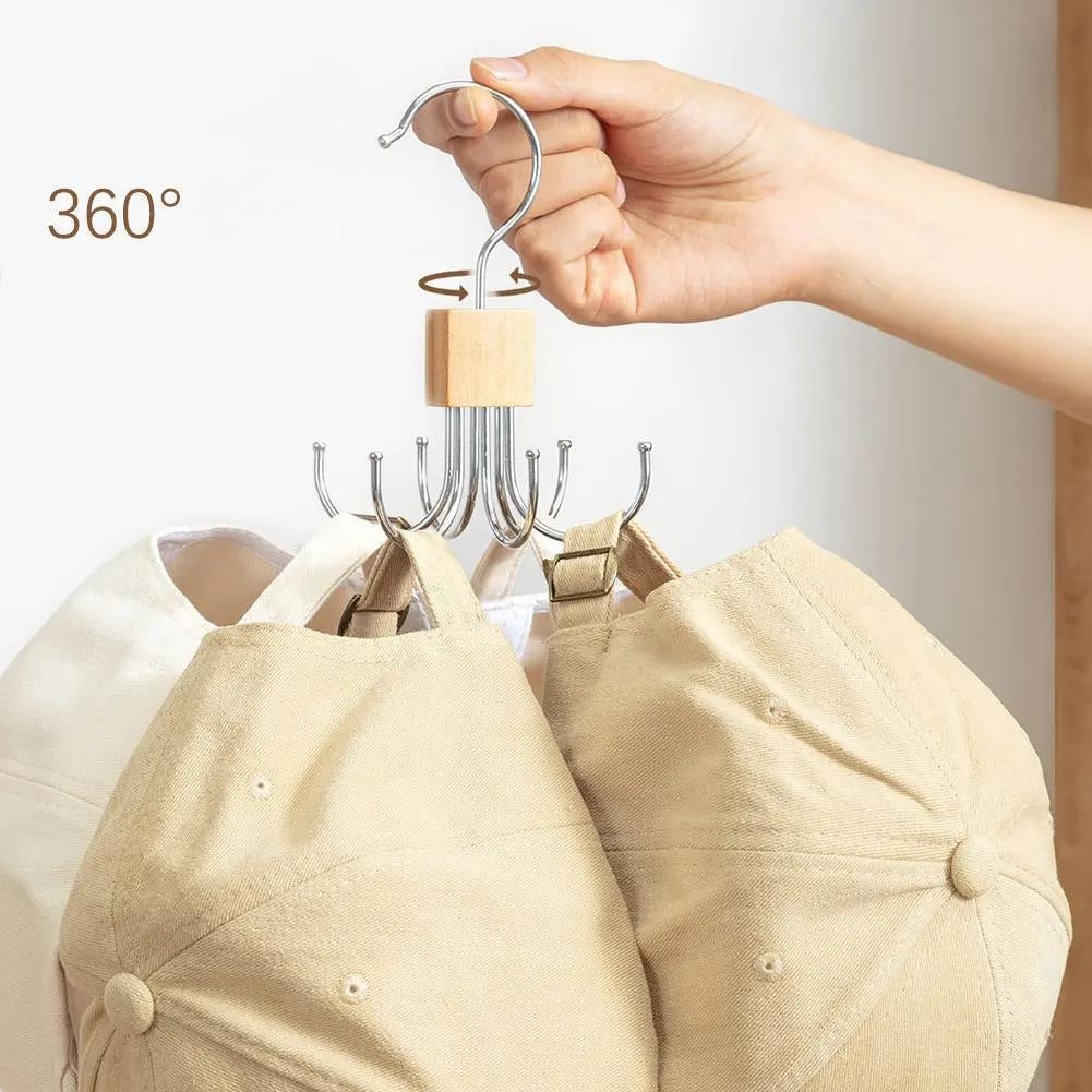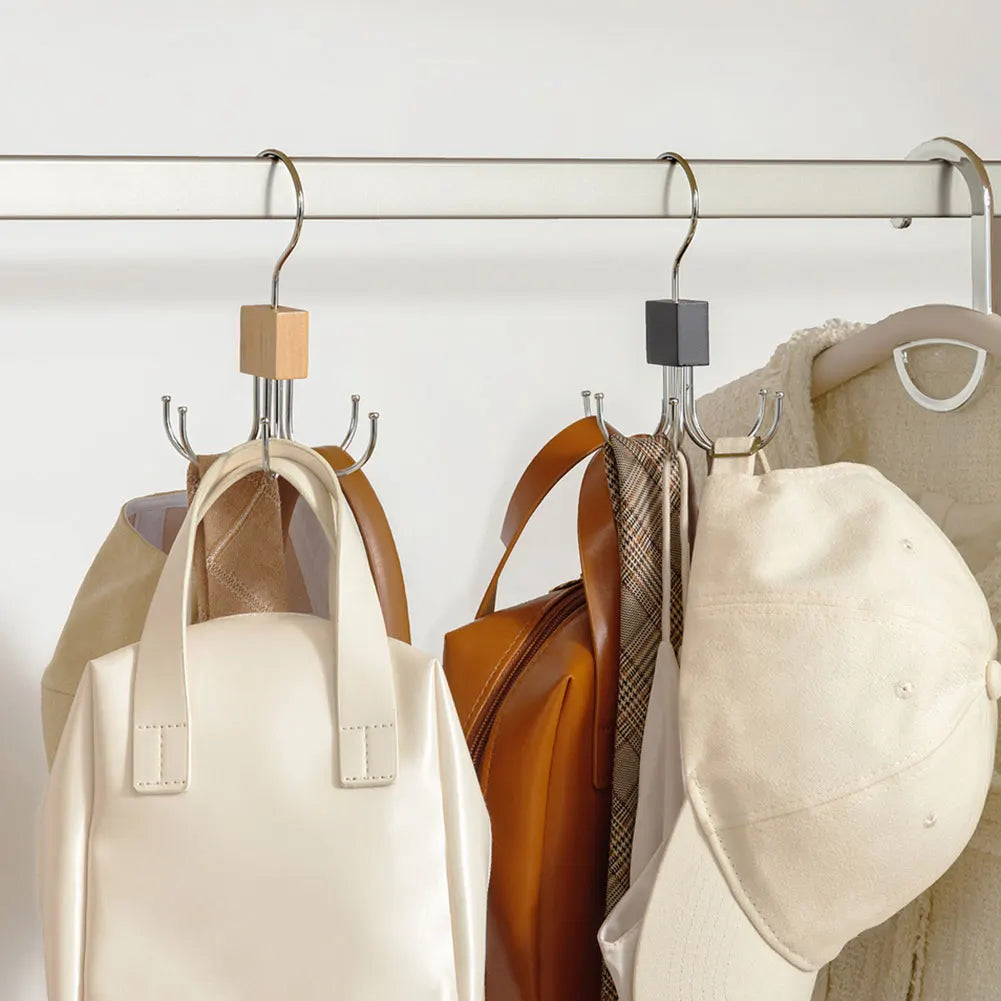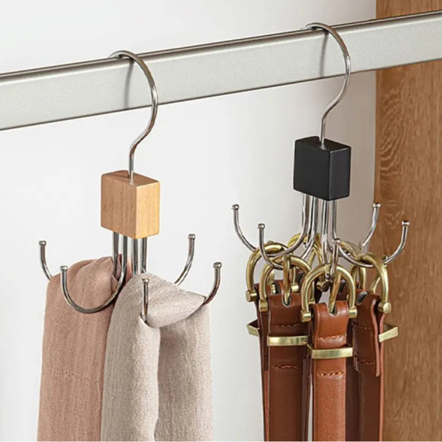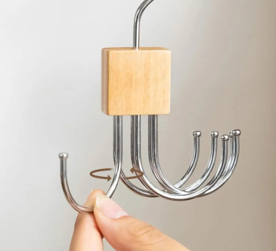Lot de 3 cintres de rangement rotatif 360° à 6 crochets en acier, organisateurs multifonctions pour ceintures, écharpes, sacs, cravates, chapeaux et accessoires – gain de place, robuste et élégant. Livraison offerte !