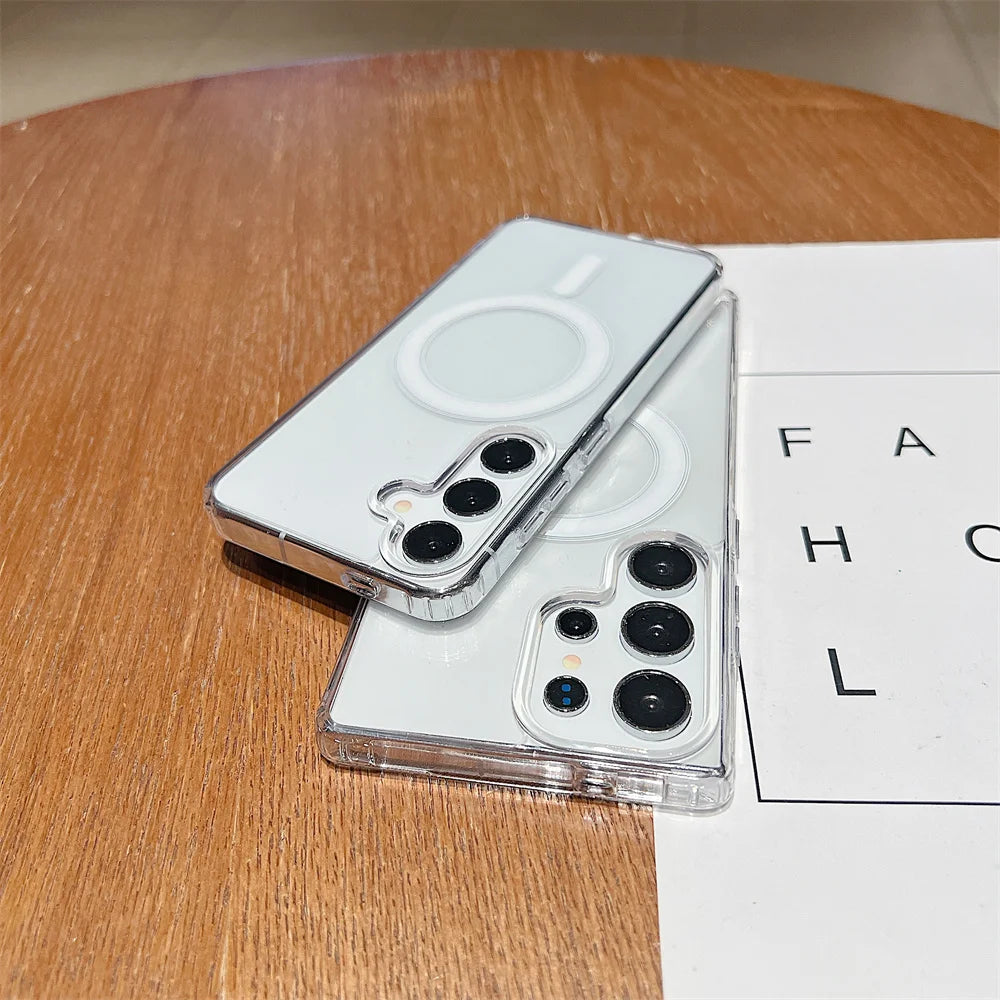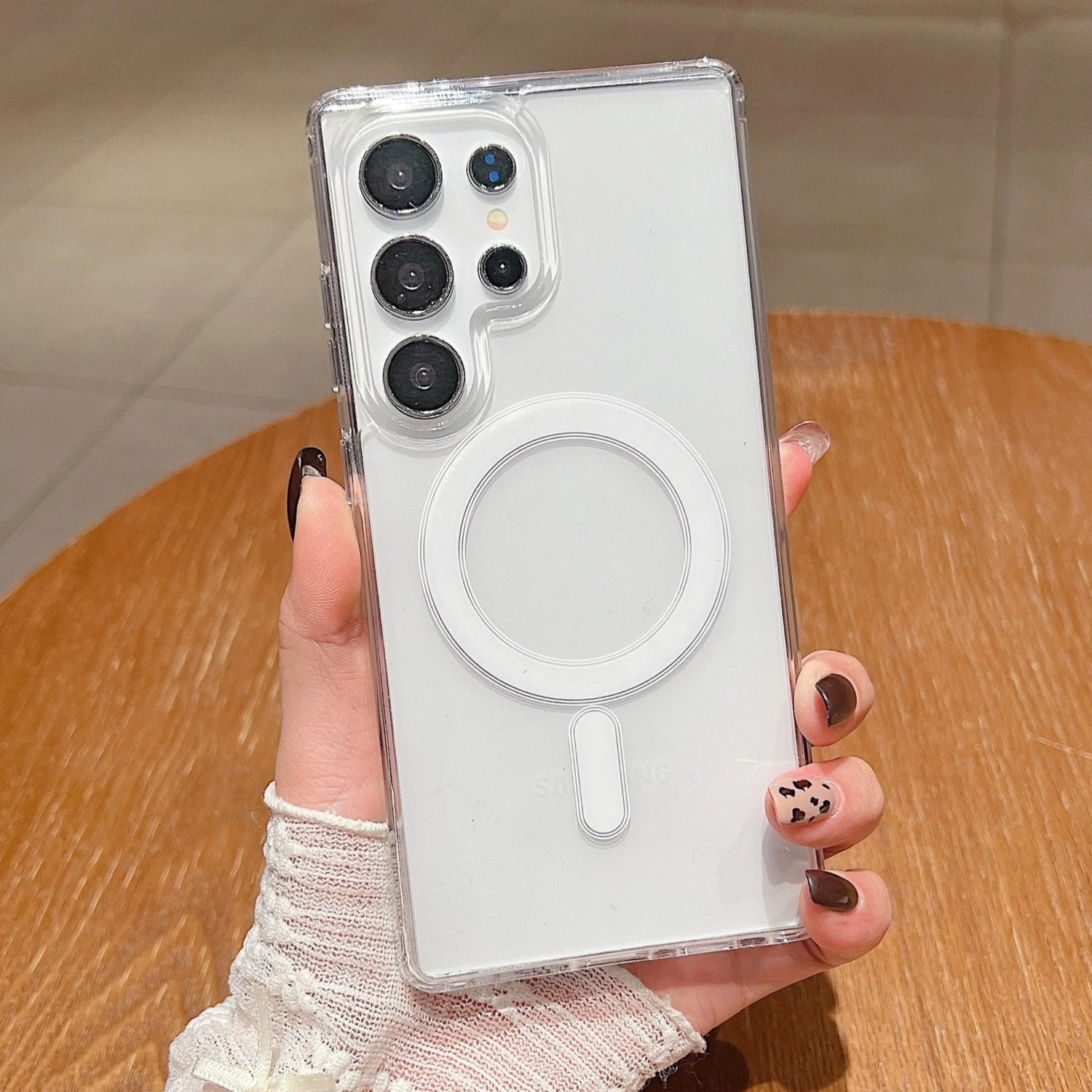 Coque transparente magnétique antichoc pour Samsung Galaxy – Compatible MagSafe, ultra fine, souple et résistante avec découpes précises. Livraison prioritaire offerte !
