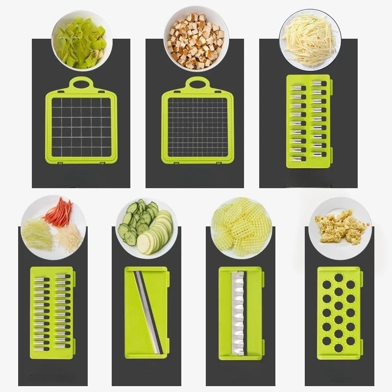Multifonction 16 en 1 : Notre coupe-légumes dispose de 7 lames interchangeables pour trancher, râper, et découper, adaptées à une variété de légumes et fruits.