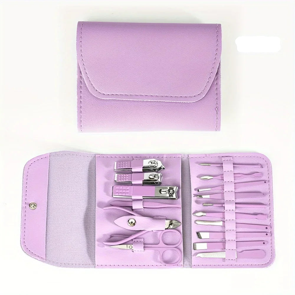 Ensemble de manucure et pédicure 16 pièces en acier inoxydable avec étui de voyage