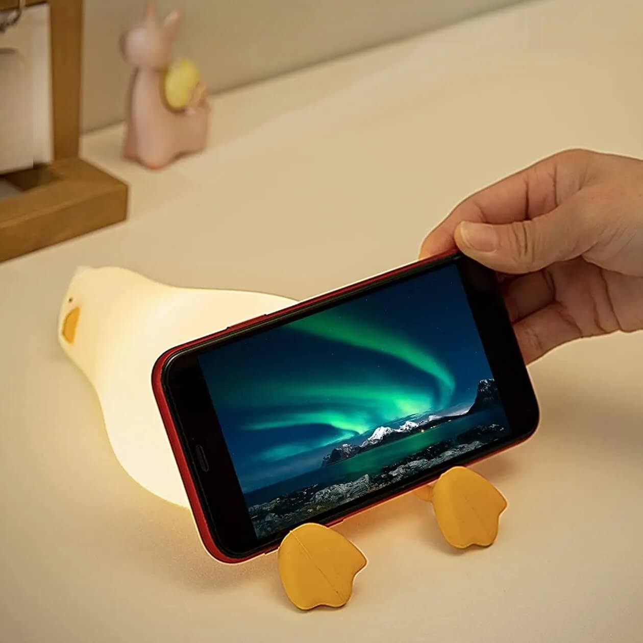 Multiples fonctions : Notre lampe amusante adopte une jolie forme de canard et une lumière chaude pour faciliter l'endormissement des enfants et des adulates. La lampe a également la fonction de support de téléphone portable, et la conception unique des pieds de canard peut facilement supporter votre téléphone portable à un angle approprié, libérant ainsi vos mains.
