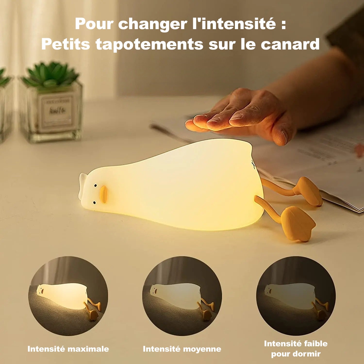 Amusante lampe veilleuse en forme de canard au repos, silicone souple, 3 intensités, veilleuse réconfortante, mignonne et humoristique, rechargeable via câble inclus. Pour les jeunes de cœur, de l'enfance à l'âge adulte. La livraison est incluse !