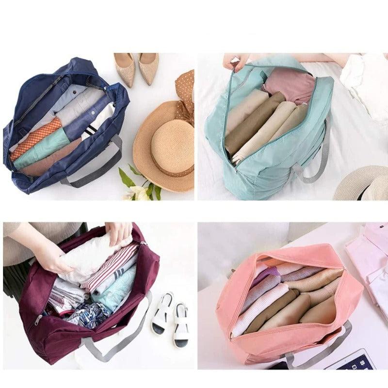 Sac de voyage adapté aux avions - Les sacs de voyage se plient lorsqu'ils ne sont pas utilisés. Avec une capacité de 15L et ne pesant que 100g, ils offrent le même espace de rangement qu'une petite valise, sans le poids ni l'encombrement.