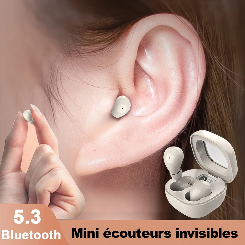 Mini écouteurs invisibles Bluetooth 5.3 – Son HiFi, réduction de bruit, contrôle tactile intelligent
