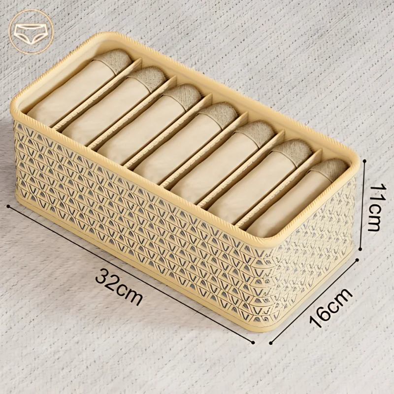 Parfait pour ranger vos sous-vêtements, chaussettes, et autres petits articles. Sa structure ingénieuse vous permet de maximiser l'espace tout en gardant vos affaires ordonnées.