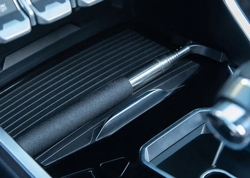 Avec une taille minimale de 21,2 cm, elle se glisse aisément dans la boîte à gants ou le compartiment de l’accoudoir central. Toujours à portée de main pour un usage rapide.