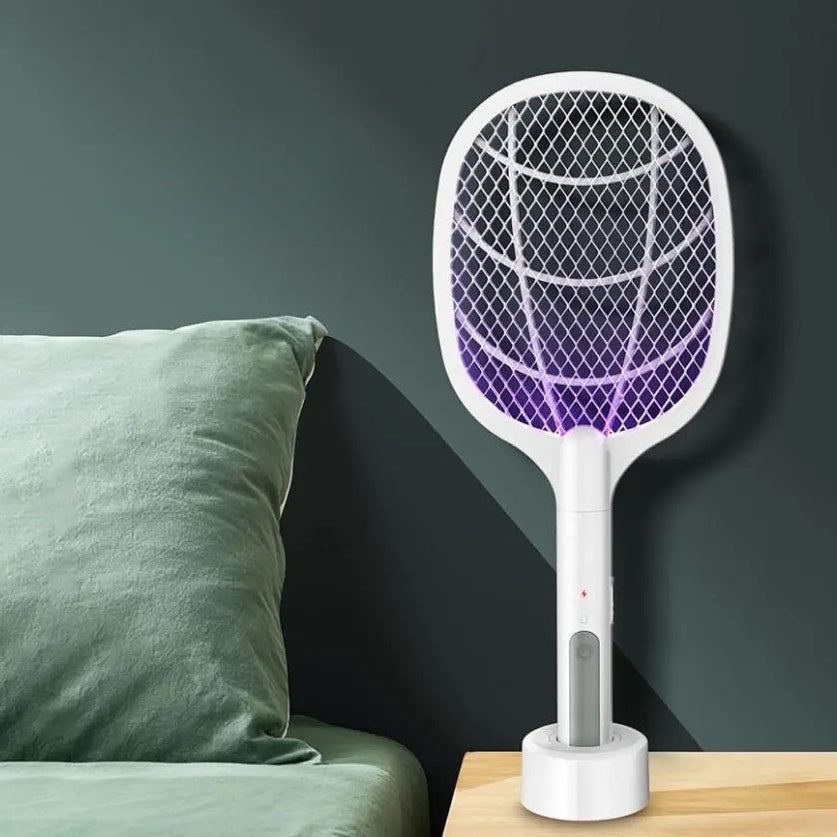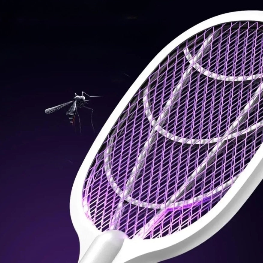 Raquette électrique anti-moustiques 3 en 1 - tue-moustiques électrique 4000V, rechargeable USB, angle ajustable. La livraison prioritaire est offerte !
