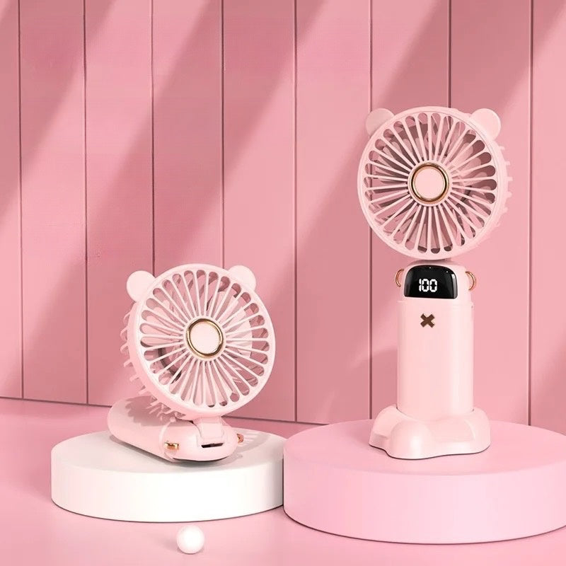 Polyvalent : ce mini ventilateur peut être utilisé de différentes manières - en main, suspendu au cou avec un cordon amovible, ou sur une table grâce à sa base détachable qui sert aussi de support pour votre téléphone.