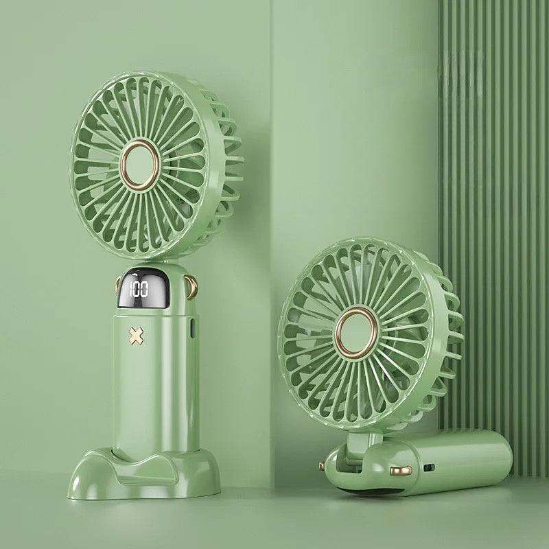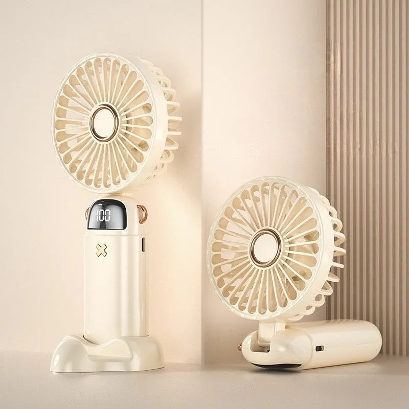 Ventilateur portable à main de 3000mAh - mini ventilateur pliable, à suspendre au cou, 5 vitesses, rechargeable USB, avec support pour téléphone et écran. La livraison prioritaire est offerte !
